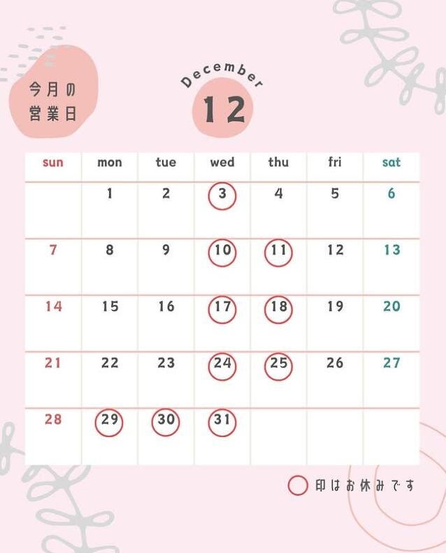 いつもご愛顧いただきありがとうございます。 ハウスドゥ 山口平川店の 12月の営業スケジュールをお知らせいたします! 〇=店休日 ●営業時間:9:30~18:00 皆さまのご来店を心...