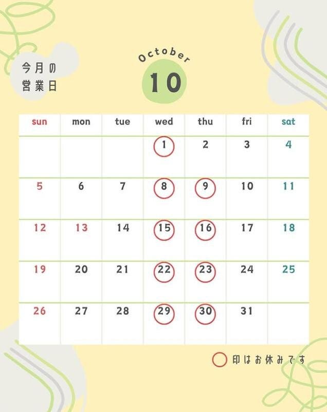 いつもご愛顧いただきありがとうございます。 ハウスドゥ 山口平川の 10月の営業スケジュールをお知らせいたします📢 ⭕️=店休日 🕘営業時間:9:30~18:00 皆さまのご...