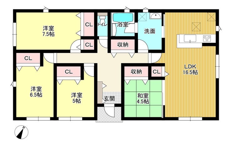 【新築・平家】LDK16.5帖の開放感。全居室収納付きで、家事も生活もスムーズに完結。